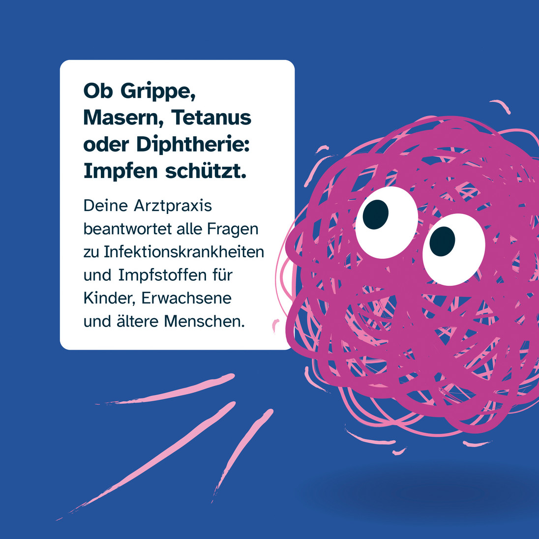 Die ärztliche Empfehlung ist für viele Menschen oft der entscheidende Impuls, sich impfen zu lassen. Mit den Plakaten wollen wir Ihnen ein einfaches, wirkungsvolles Instrument an die Hand geben, um Impflücken zu thematisieren und die Impfbereitschaft zu stärken.